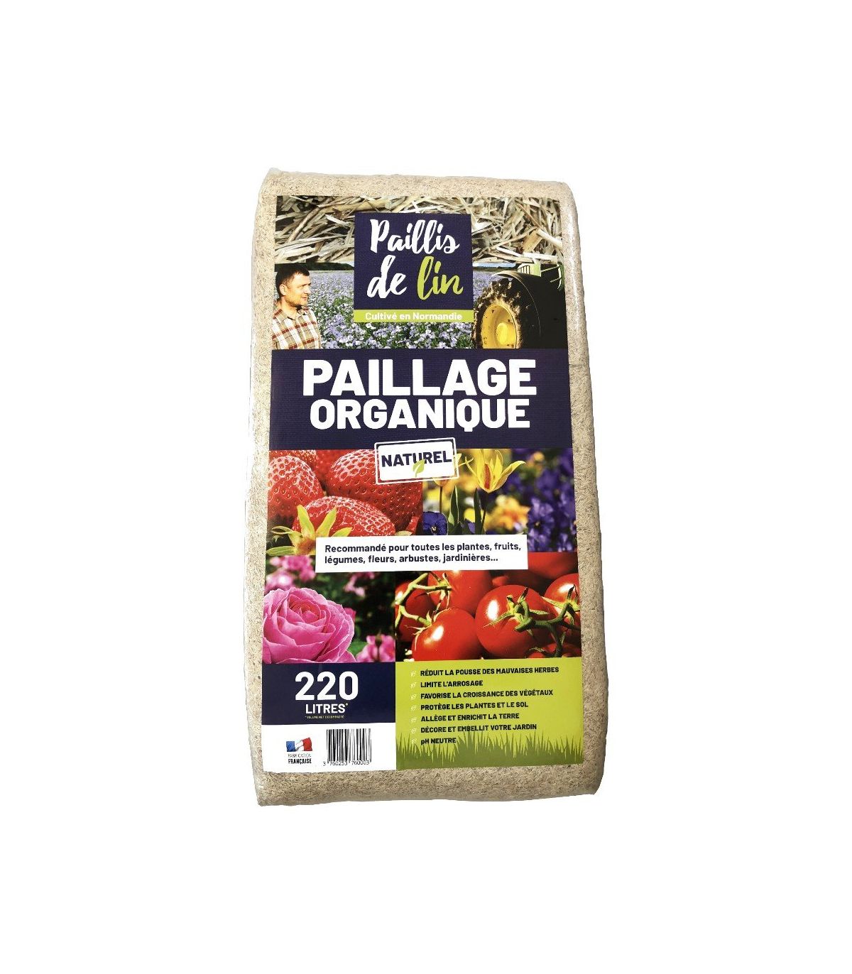 Paillis de lin, organique et naturelle pour jardins potagers, 10 balles de 220l - F-PAI058-10x220