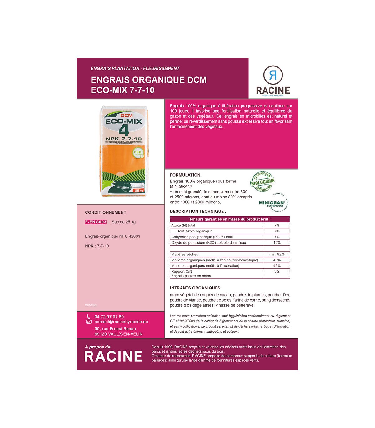 - Présence d’engrais intégré