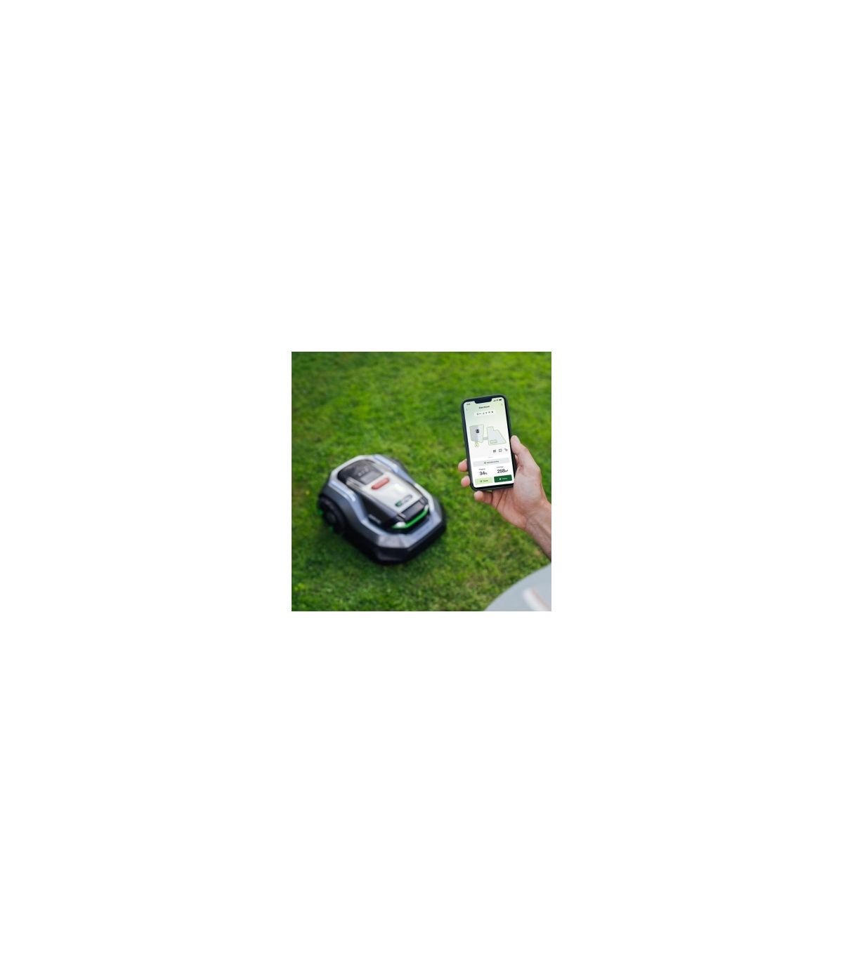 - Installation sans câble périphérique — Cartographie automatique via l'application EGO Connect, périmètre virtuel paramétrable en quelques minutes