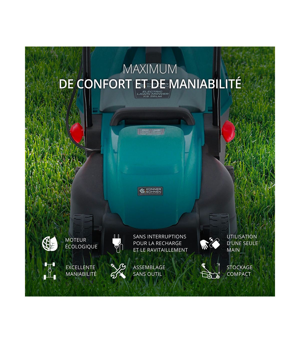 La tondeuse électrique KS 32LM de Könner & Söhnen est la preuve qu'il n'est pas nécessaire d'avoir une machine énorme pour obtenir un résultat parfait. Spécialement conçue pour les jardins urbains, les cours intérieures ou les petites surfaces de pelouse (jusqu'à 300-400 m²), elle mise tout sur la légèreté et la simplicité d'utilisation.