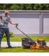 - Lame mulching de 50 cm pour soit une éjection latérale, soit un ramassage dans un bac de 60L ou un broyage complet de l'herbe.