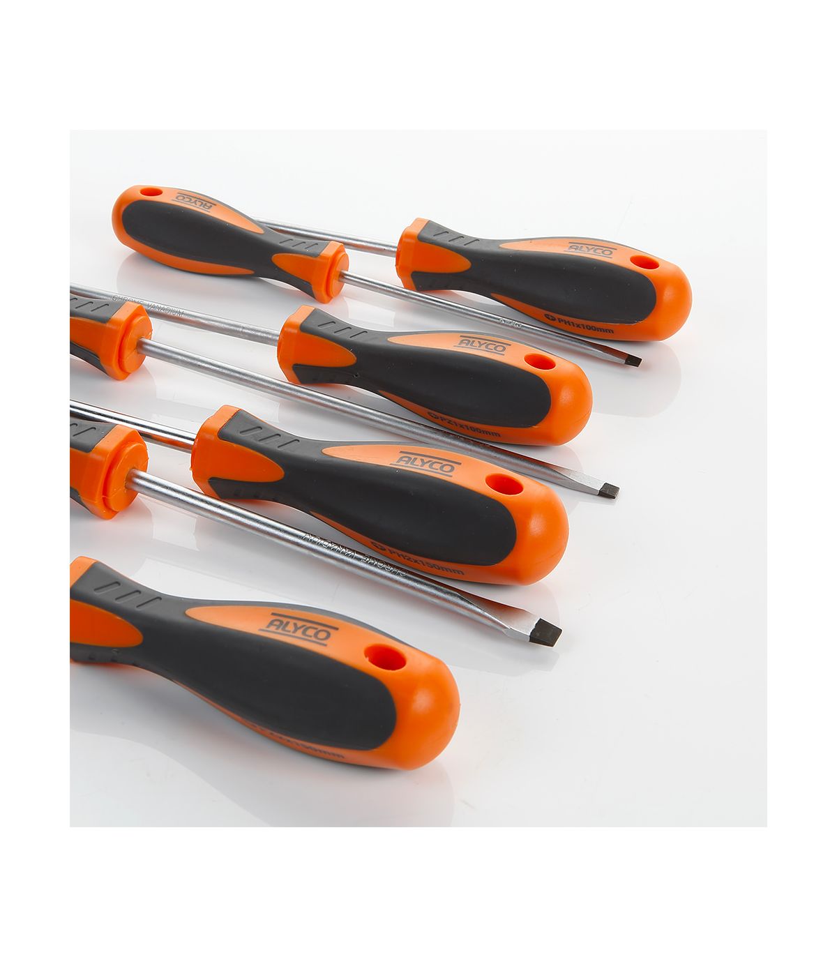 Le Set de 8 Tournevis Alyco Orange 170450 est la solution d'outillage polyvalente par excellence pour les professionnels de la maintenance, de l'industrie et du bâtiment. Ce kit a été pensé pour offrir une gamme complète capable de faire face à la quasi-totalité des fixations rencontrées au quotidien. En regroupant huit tournevis de tailles et d'empreintes complémentaires, Alyco permet aux artisans de centraliser leur outillage de vissage dans un ensemble cohérent et de haute qualité. Fabriqués selon des standards industriels rigoureux, ces tournevis utilisent un acier Chrome Vanadium (CrV) sélectionné pour sa dureté et sa capacité à encaisser les chocs sans écaillage.