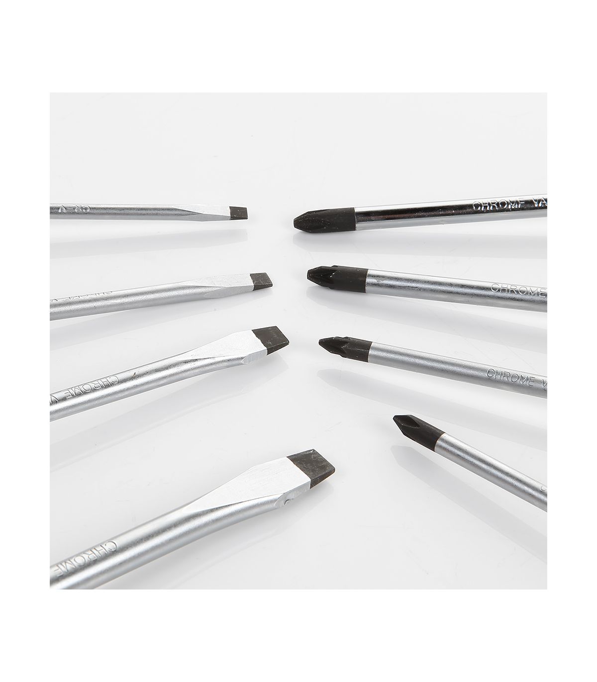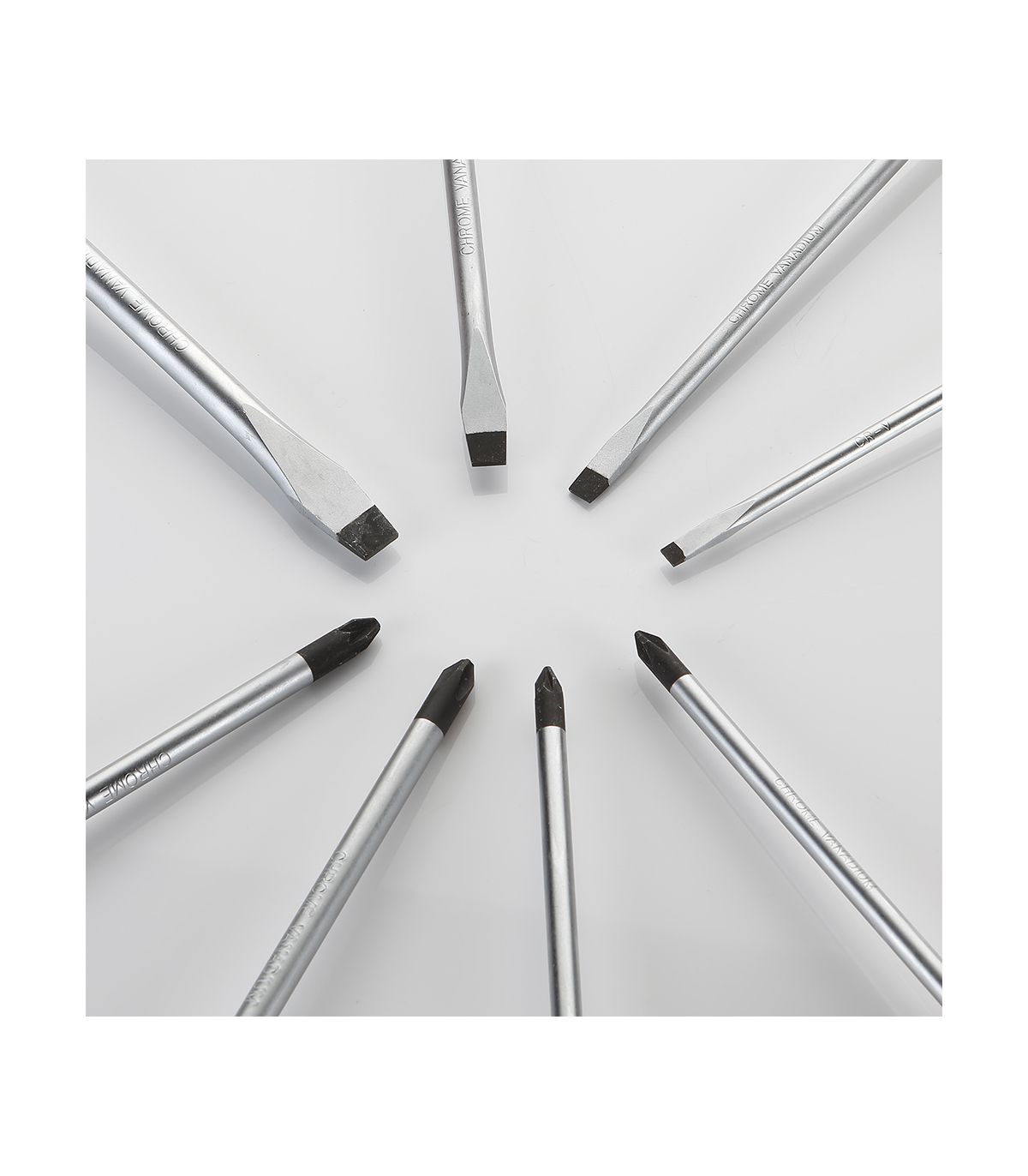 - Set professionnel de 8 pièces : Un assortiment complet (Plat et Phillips) couvrant tous les besoins de maintenance mécanique et bâtiment.