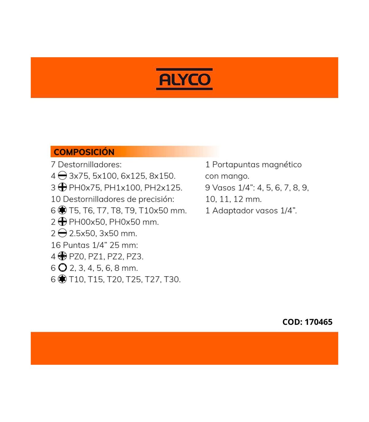 Set Mixte 44 Pces Alyco Orange Tournevis Alyco 170465