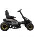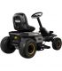 La transmission hydrostatique avec commande au pied représente un atout majeur de cette autoportée électrique. Contrairement aux systèmes à vitesses mécaniques, elle permet un contrôle progressif de 0 à 11,2 km/h sans à-coups, idéal pour contourner obstacles et massifs avec précision. Le rayon de braquage de 43 cm facilite les manœuvres autour des arbres et bordures. Le châssis supporte 138 kg à vide, répartis sur des roues pneumatiques avant 15" et arrière 18", garantissant stabilité sur terrain irrégulier. Les freins à tambour assurent un arrêt sécurisé même en pente, tandis que l'attelage remorque autorise le transport de matériaux (charge maximale à vérifier selon réglementation).